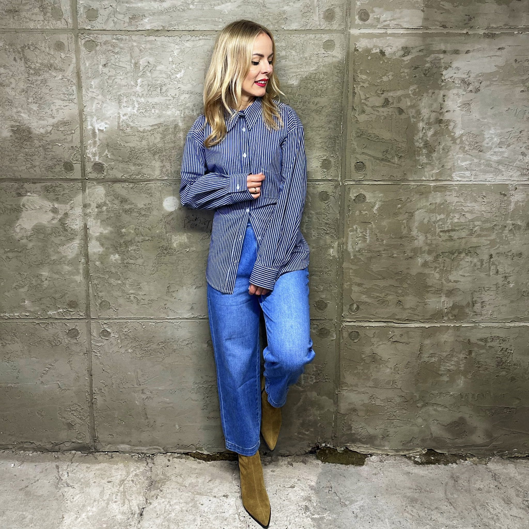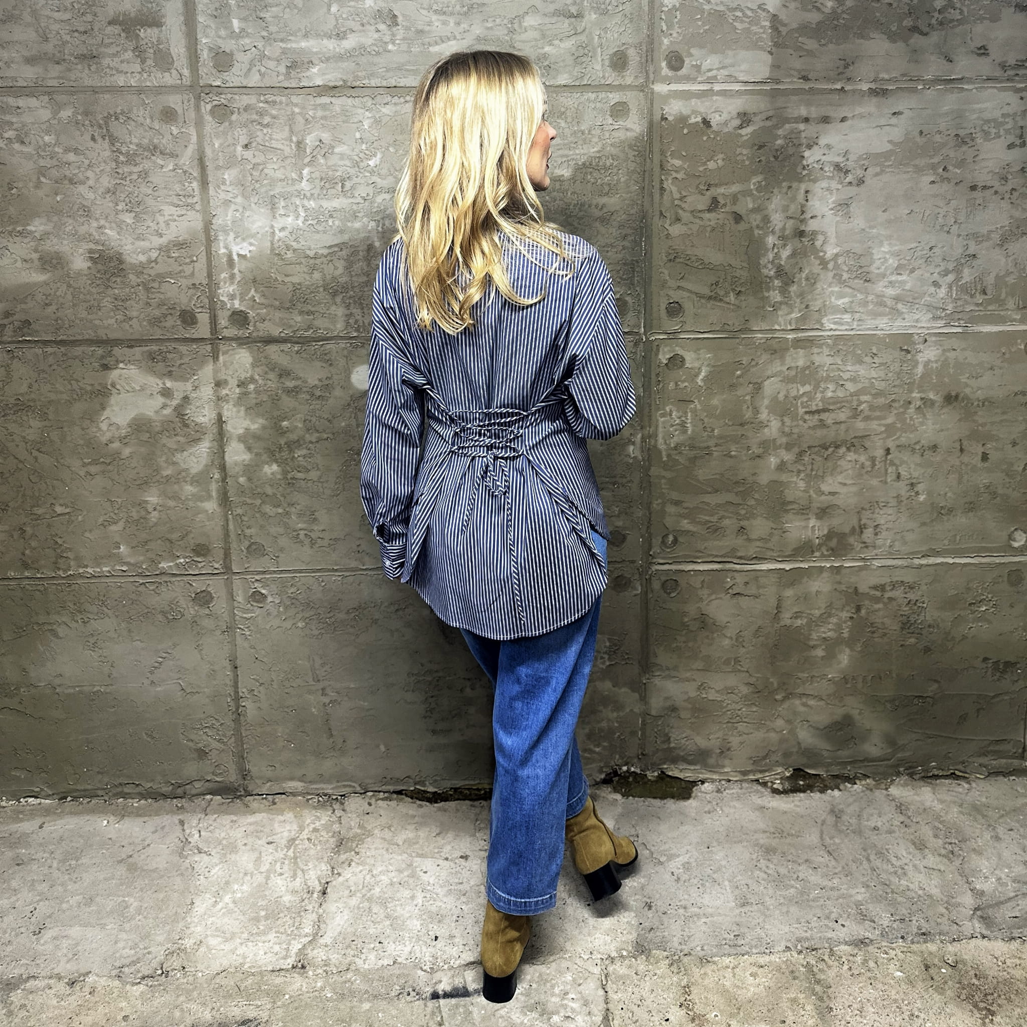Bawełniana koszula w niebieskie paski z wiązaniem na plecach