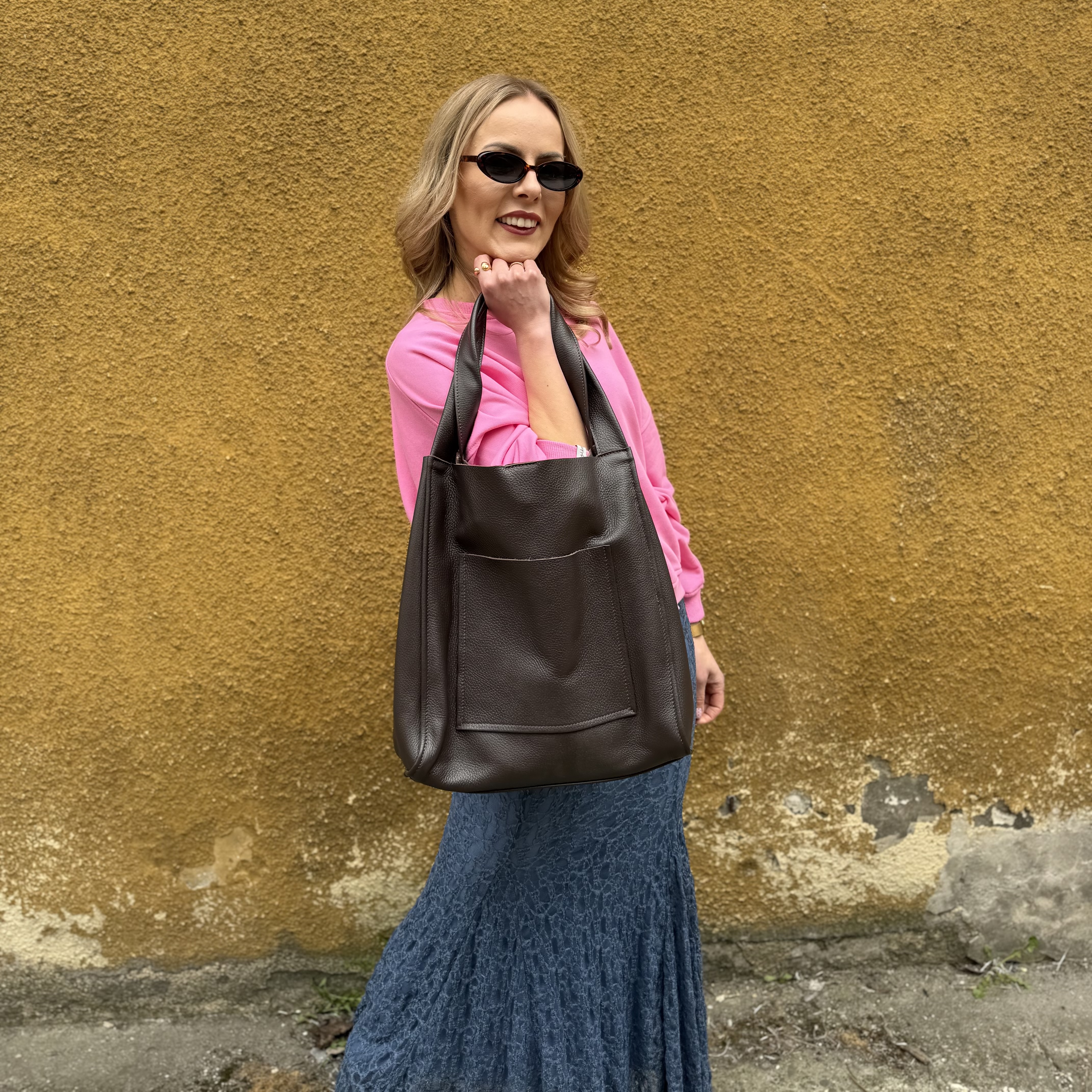 Brązowa skórzana torebka typu shopper