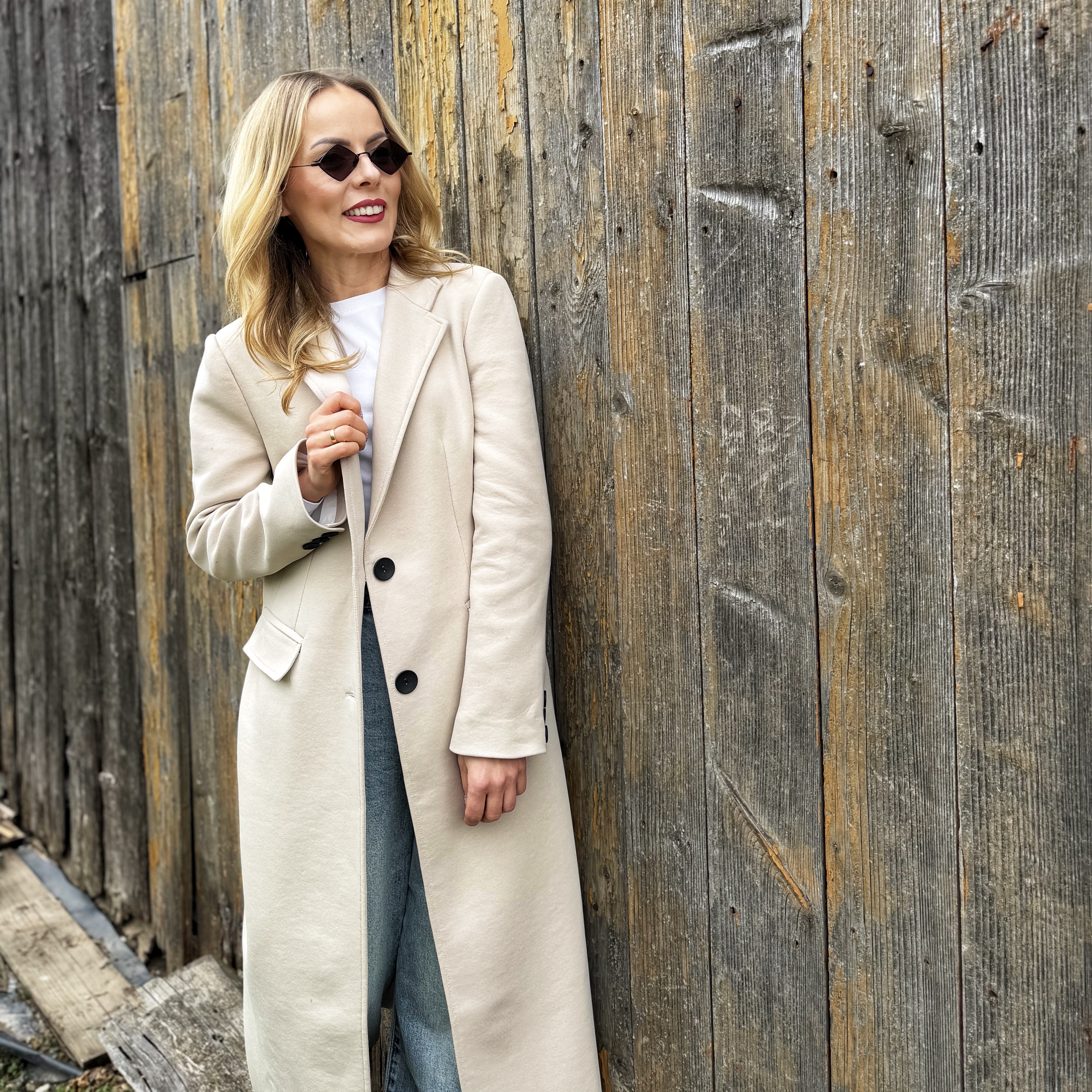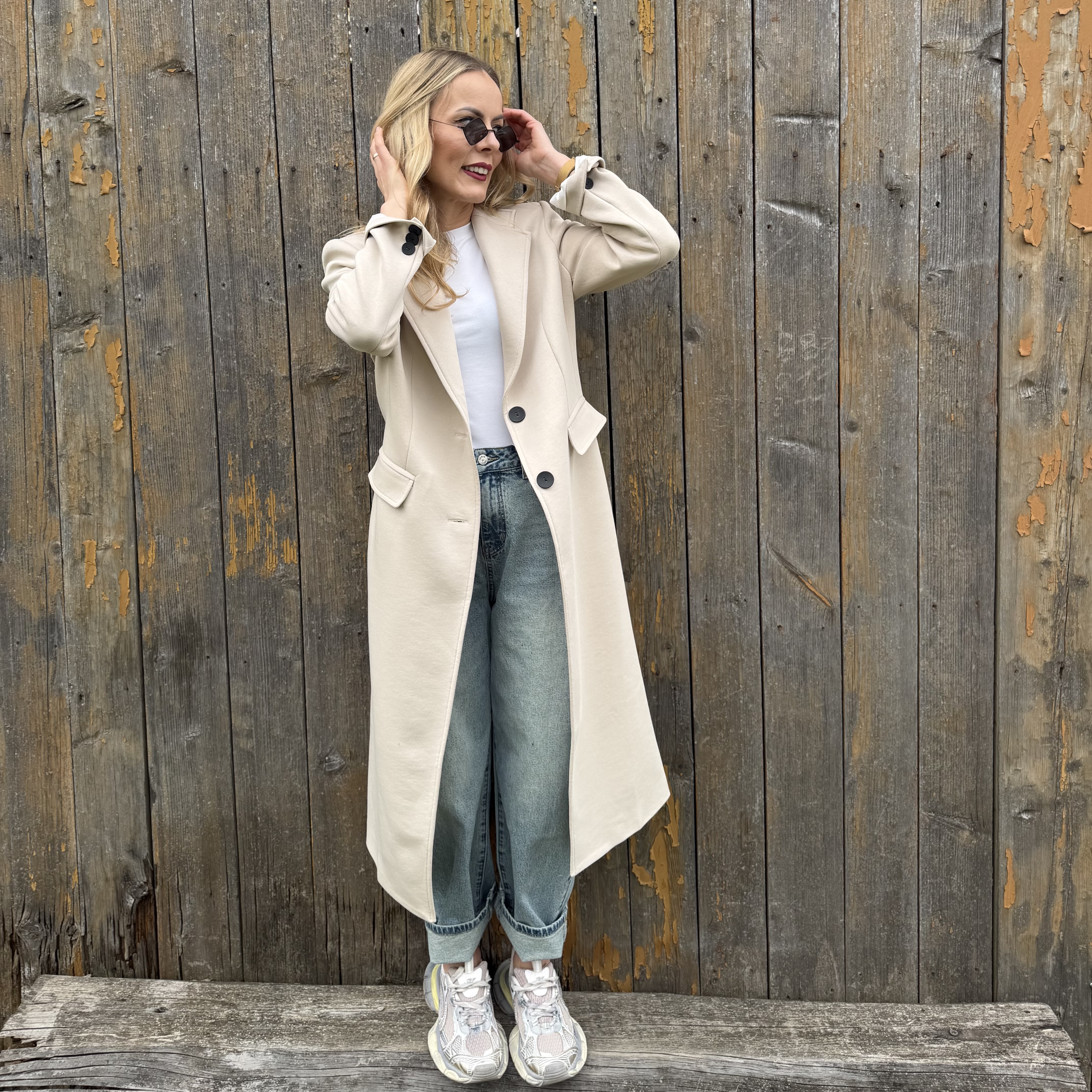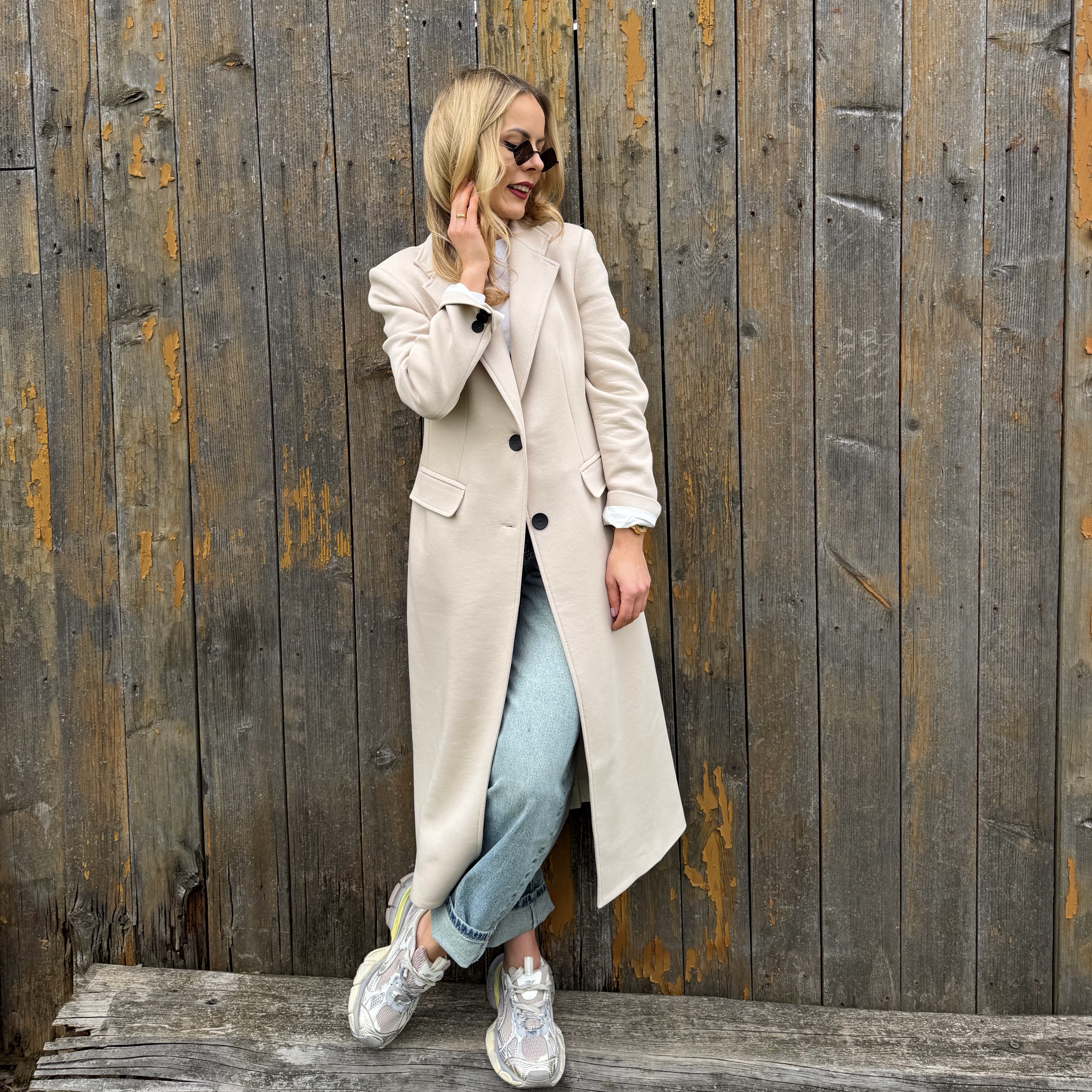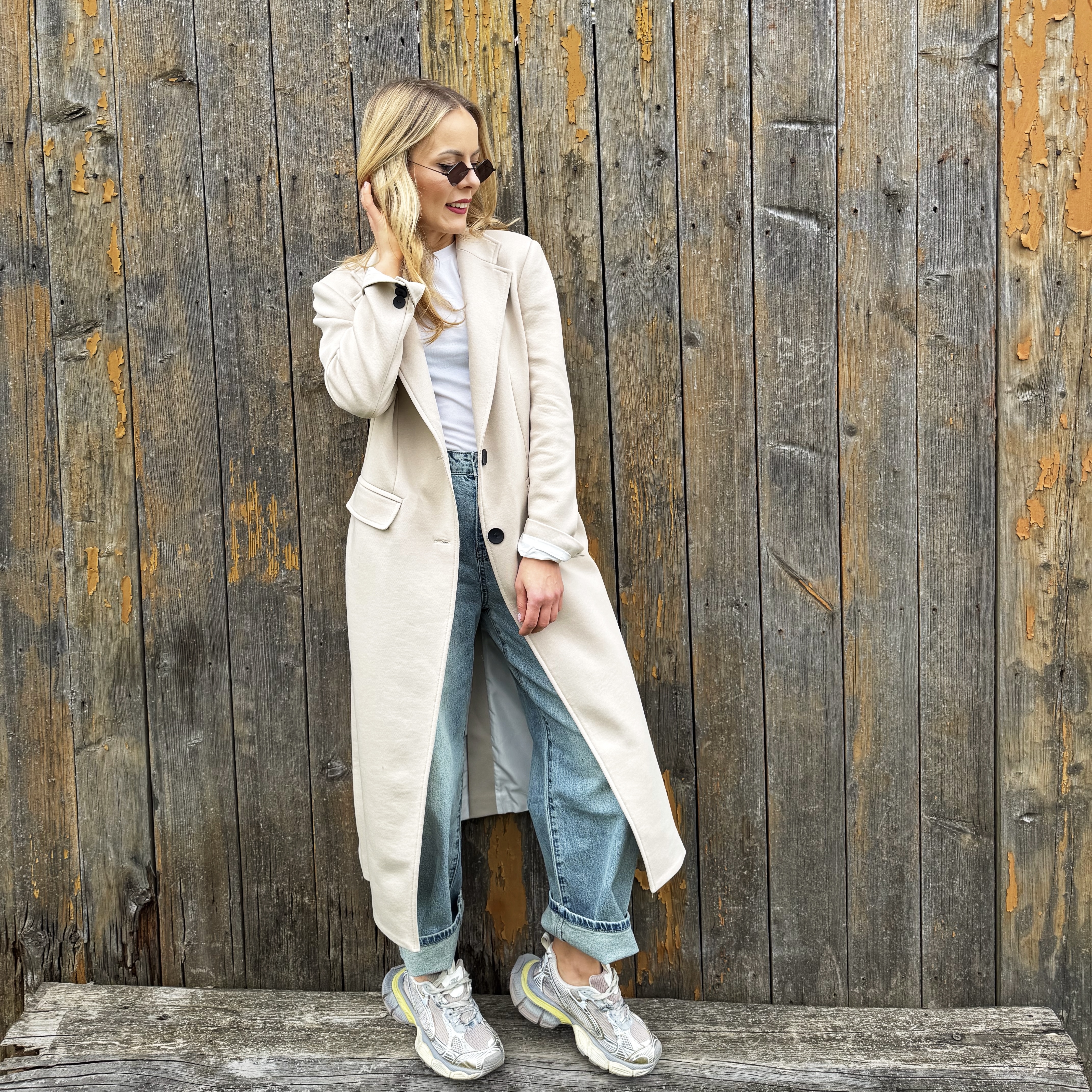 Klasyczny beżowy długi bawełniany płaszcz ( polski producent