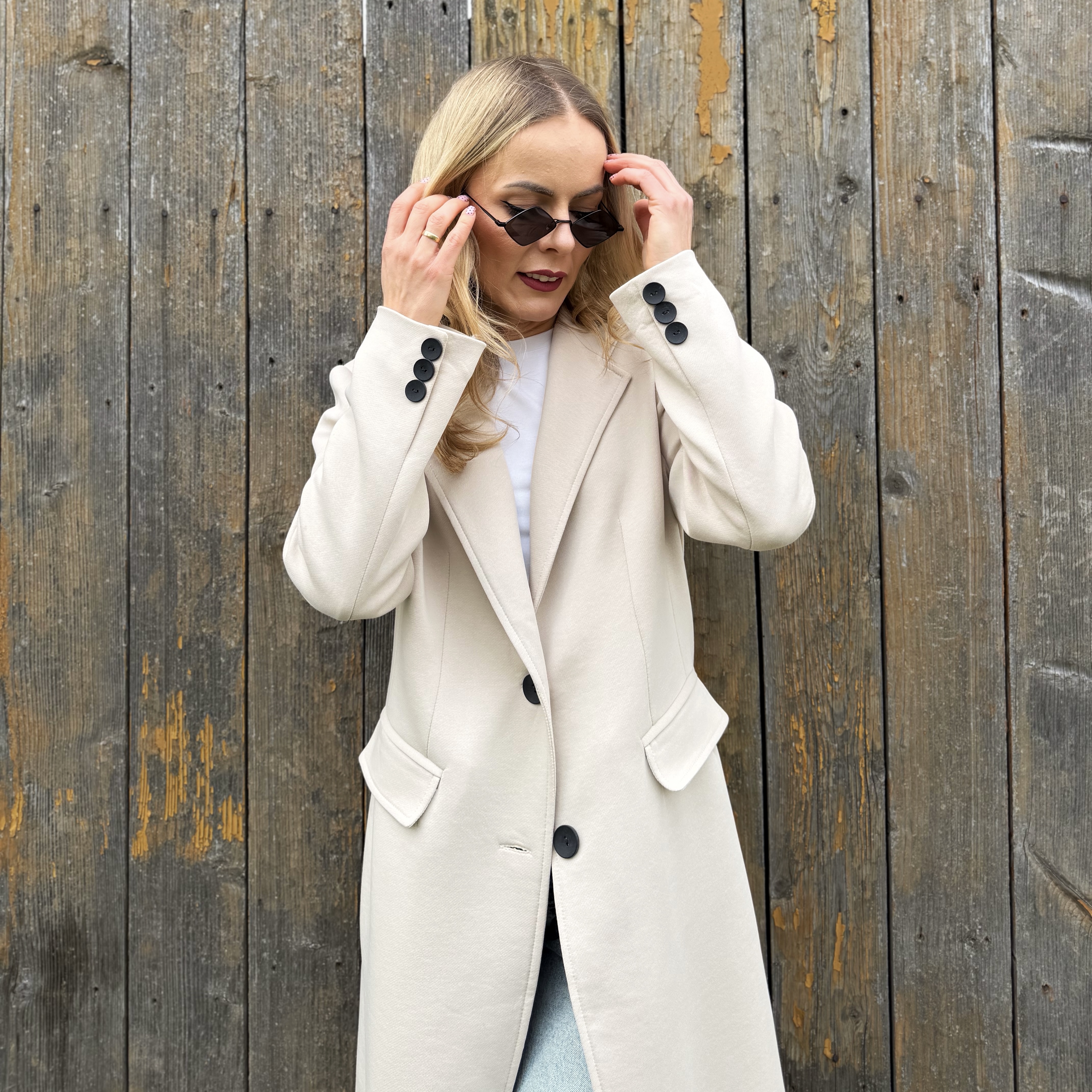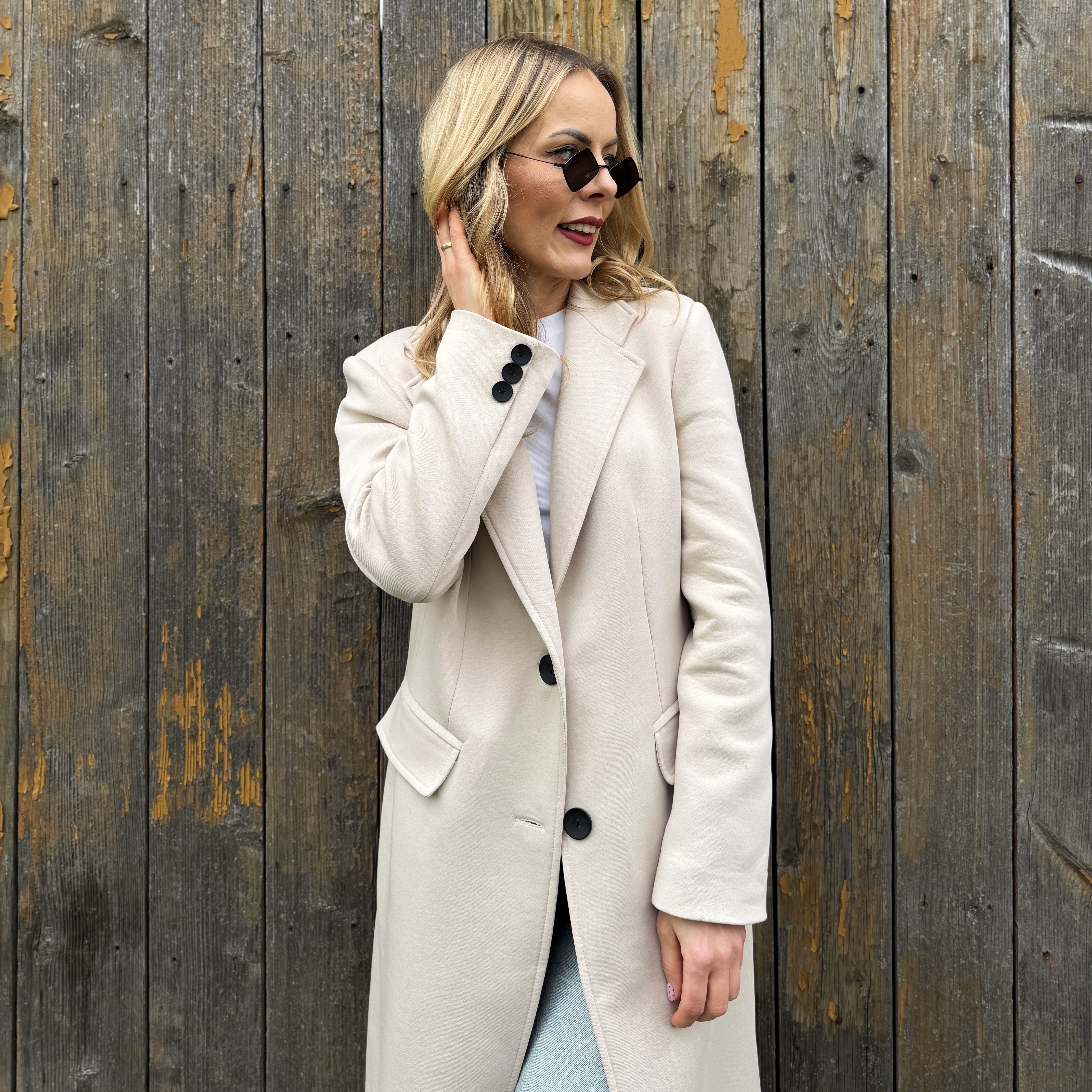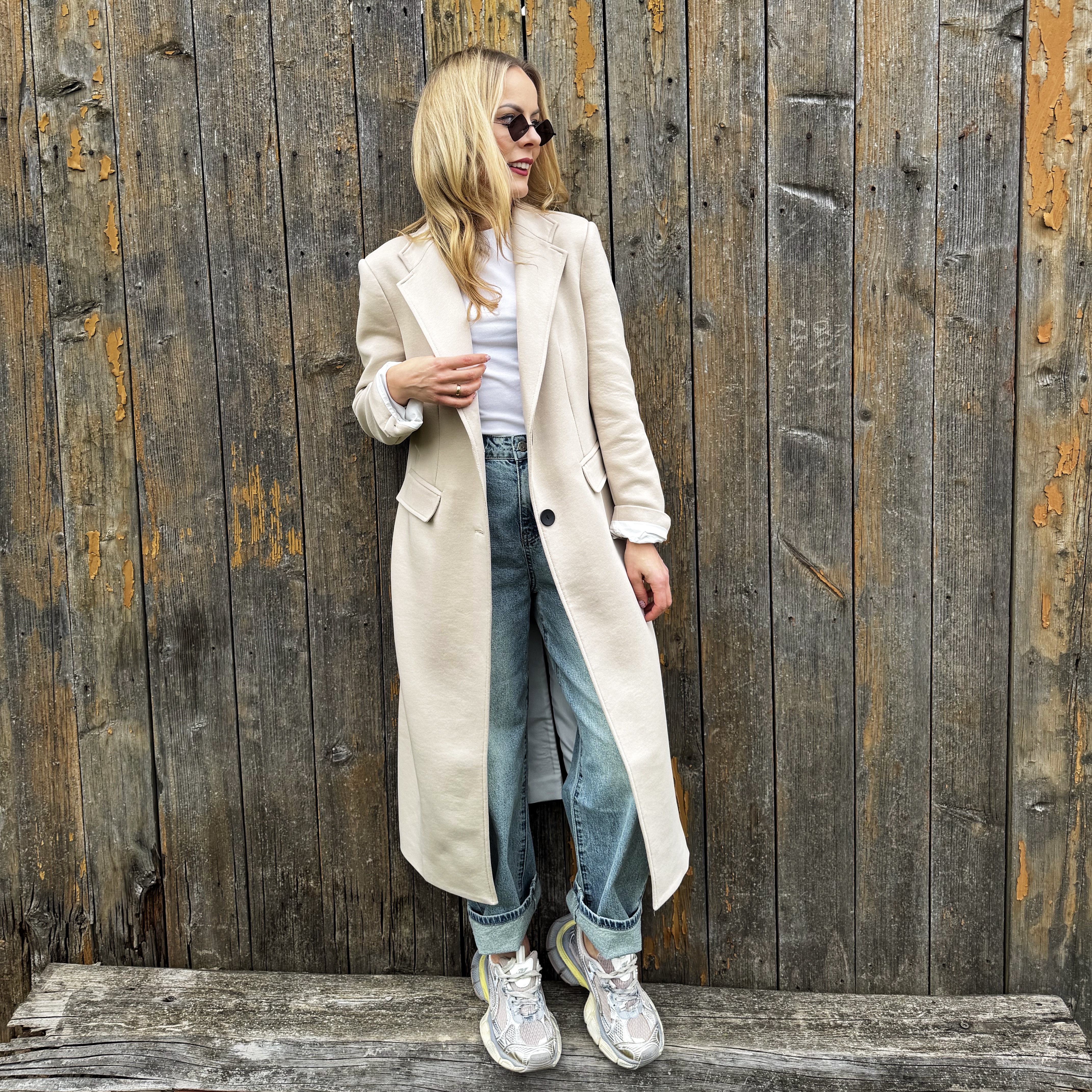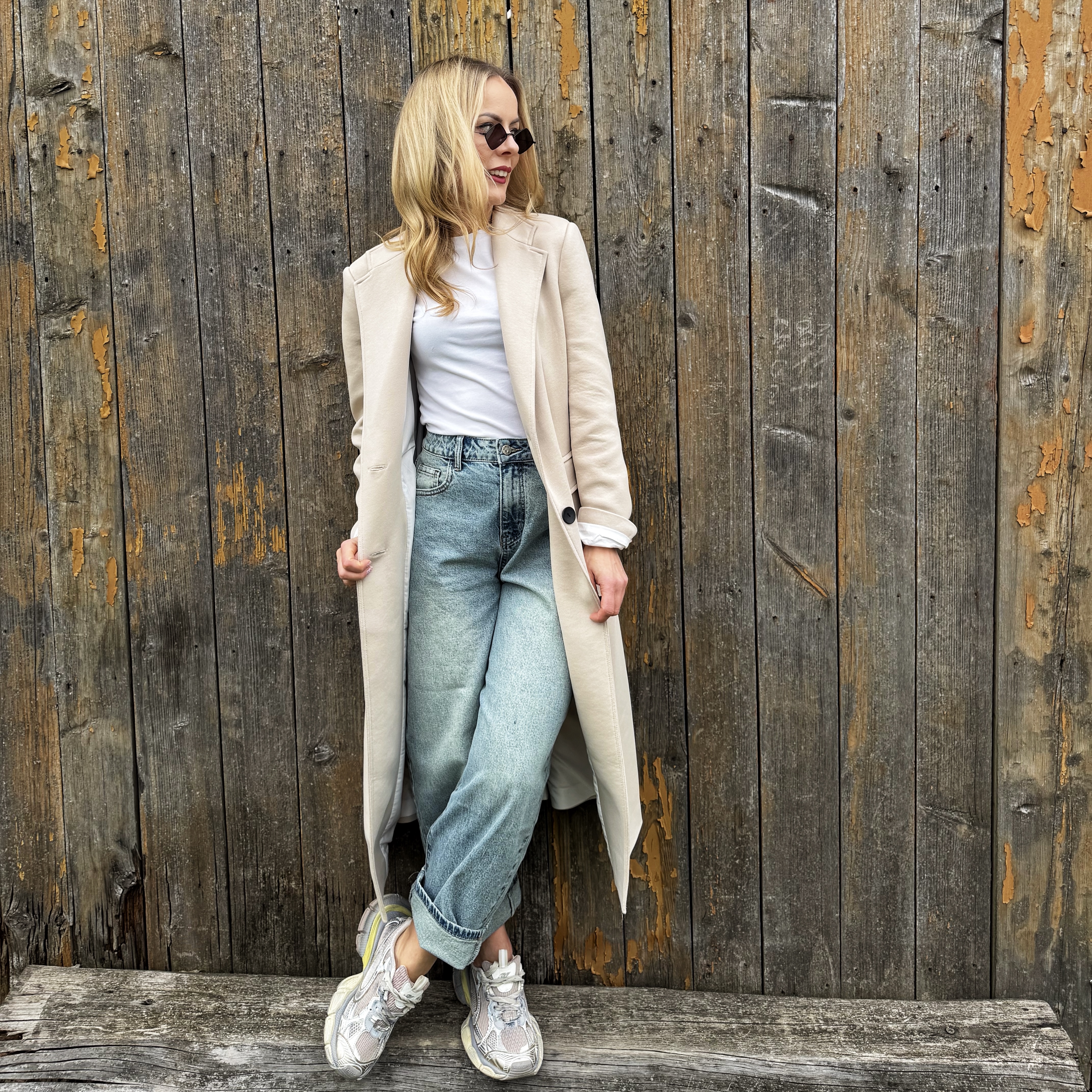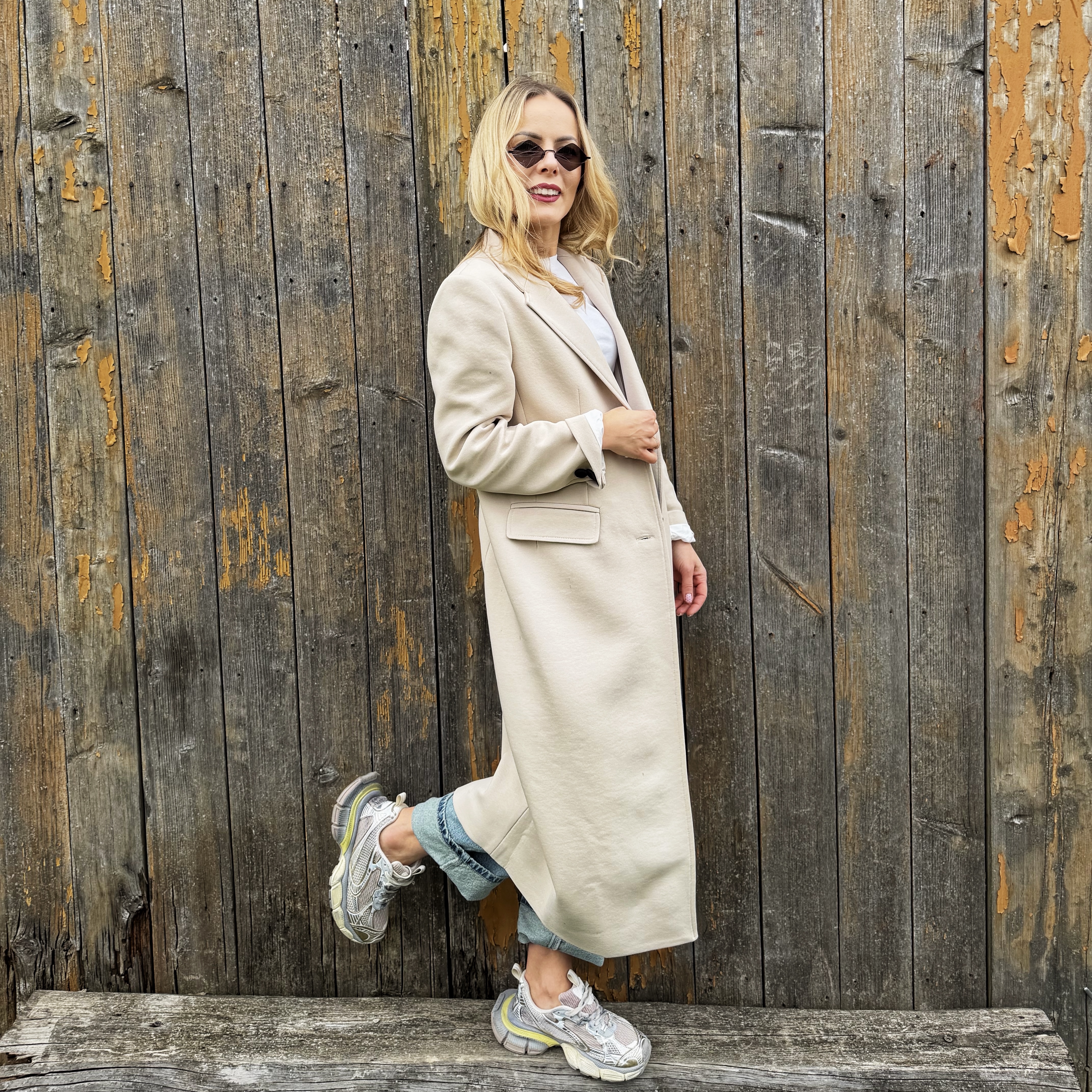 Klasyczny beżowy długi bawełniany płaszcz ( polski producent