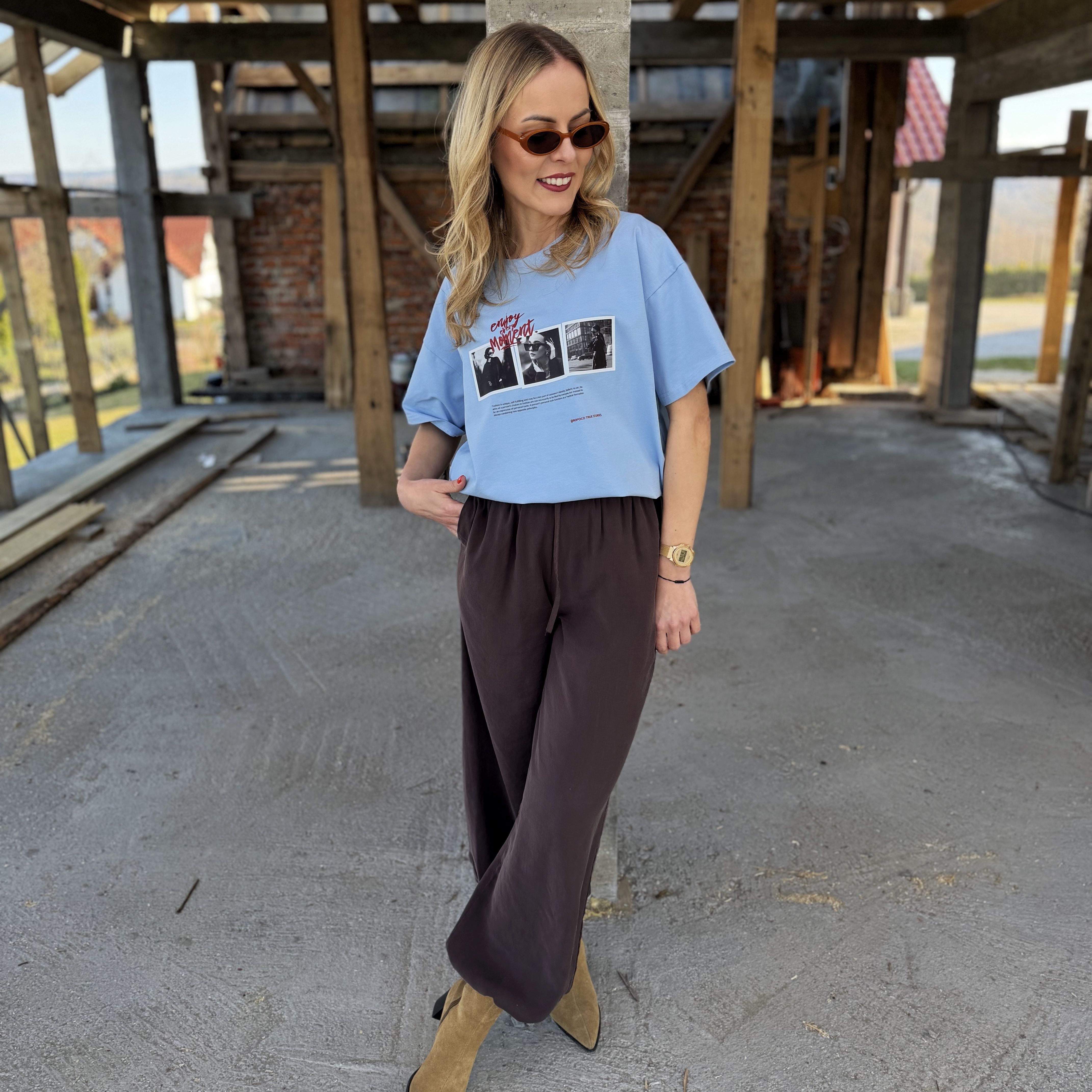 Niebieski t-shirt z aplikacją (polski producent)
