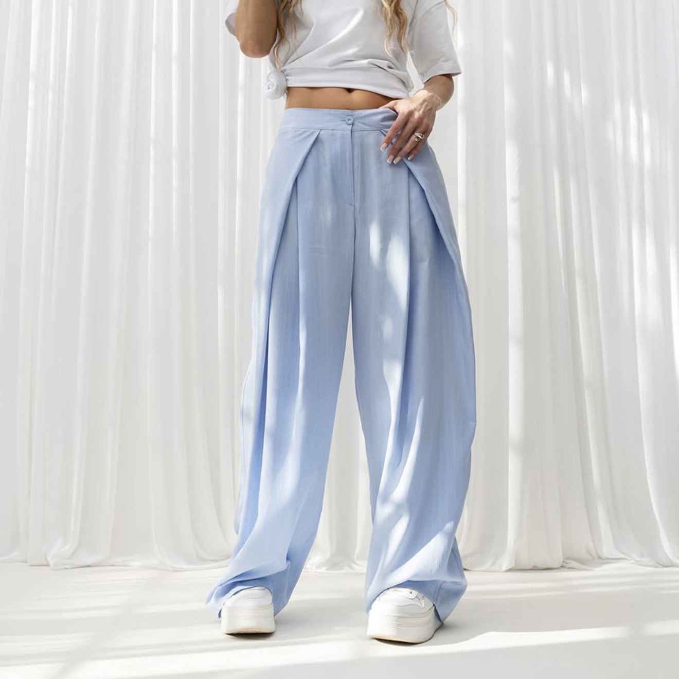 Niebieskie wiskozowe spodnie w paski (polski producent)