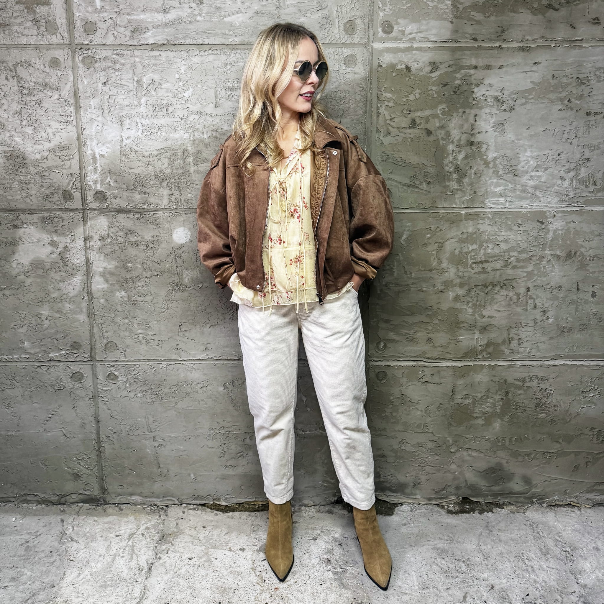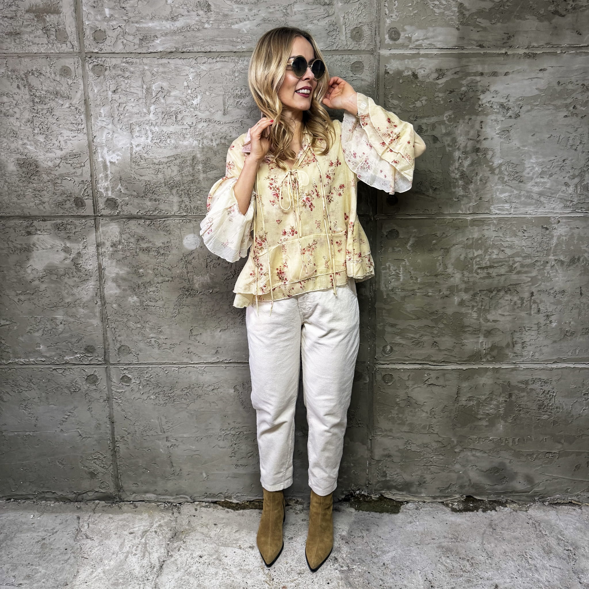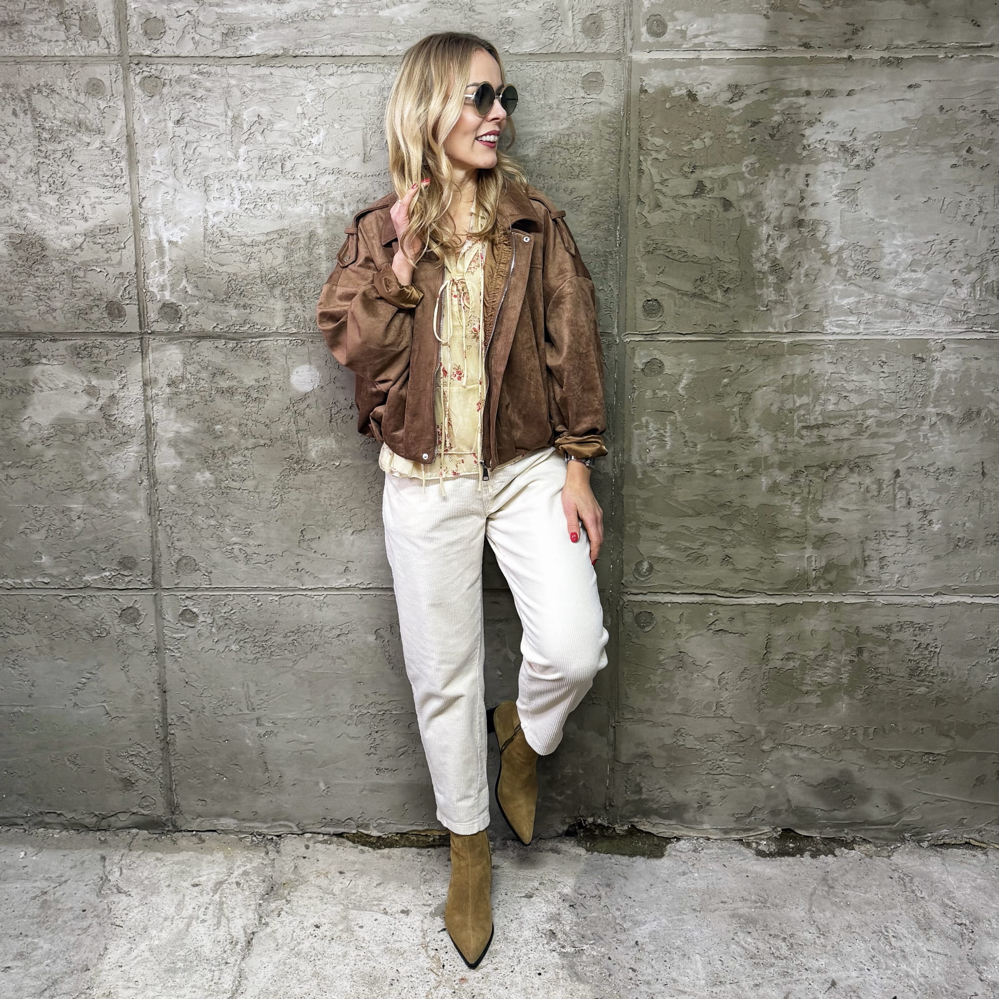 Śmietankowe spodnie sztruksowe Wiya