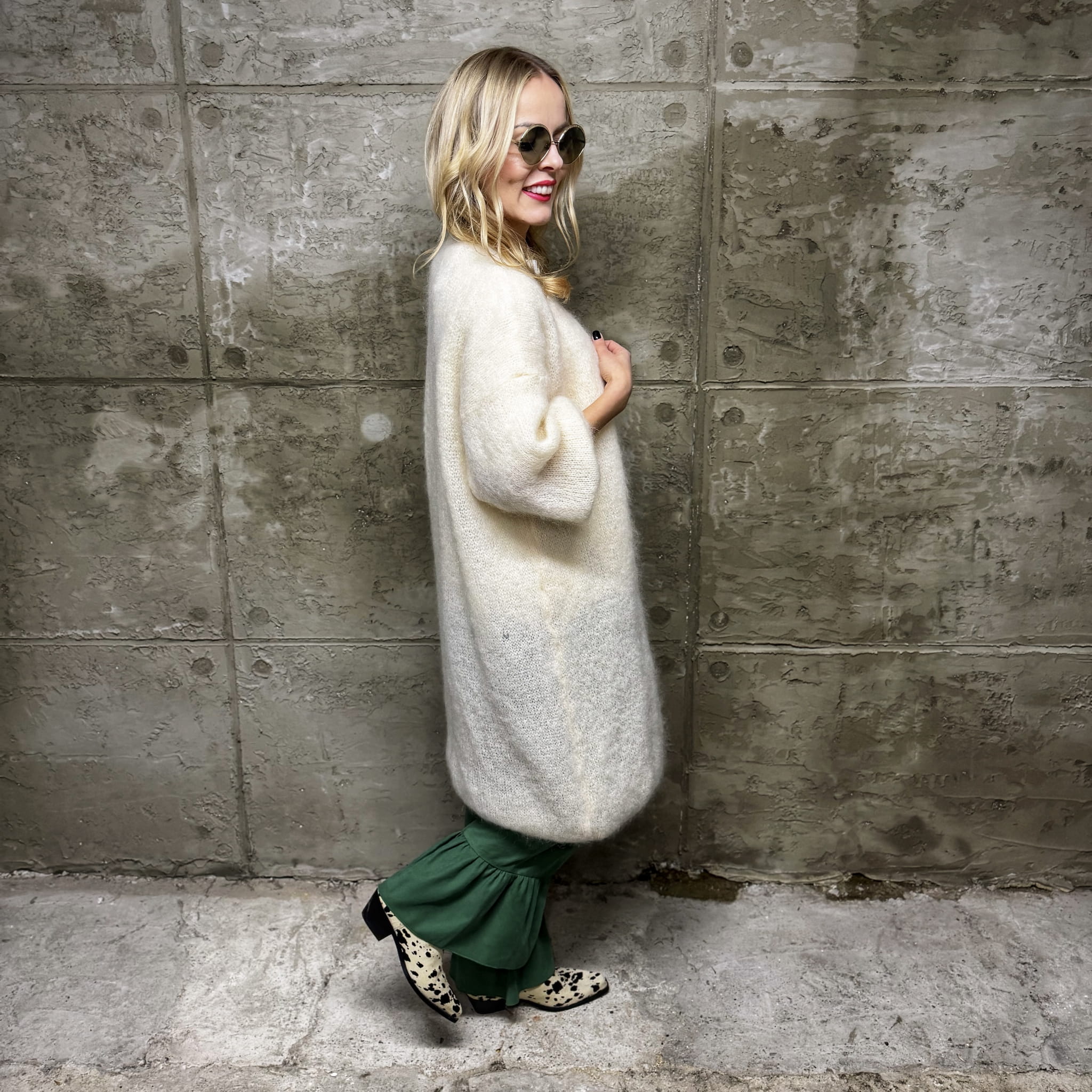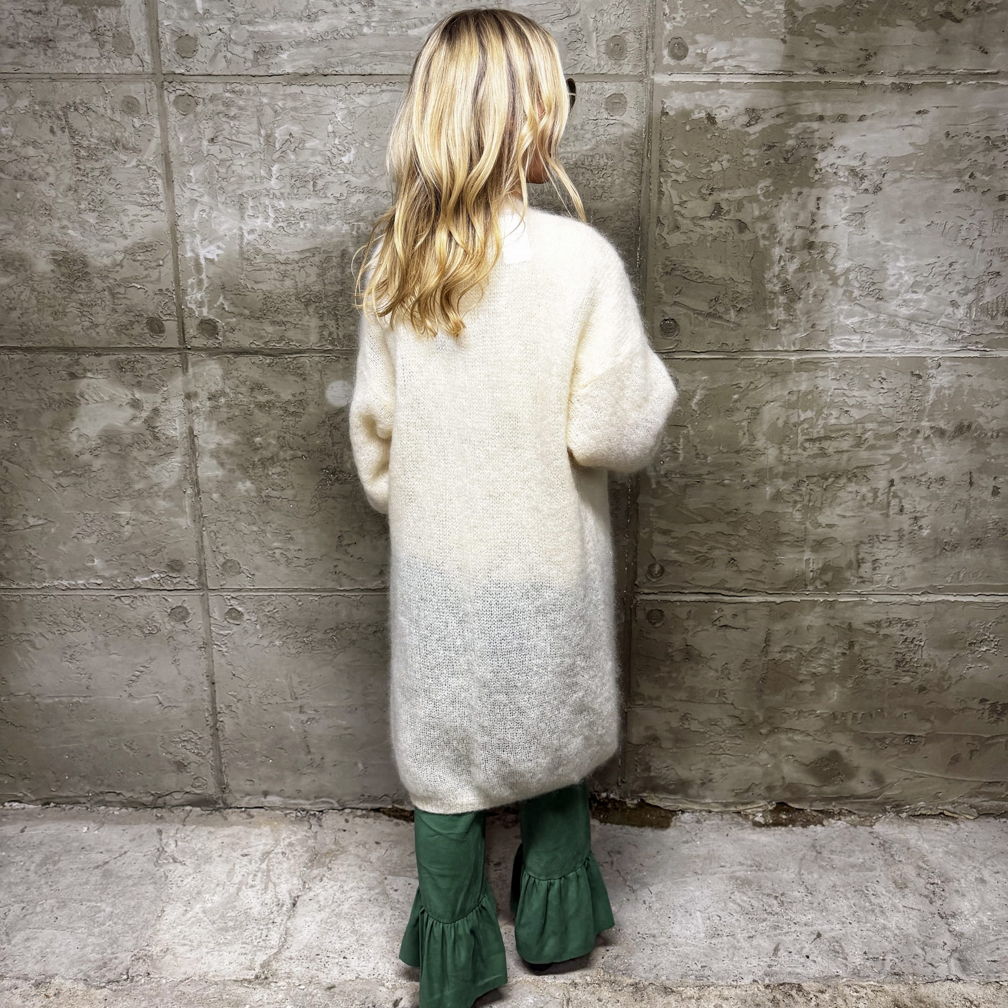 Śmietankowy długi moherowy sweter premium